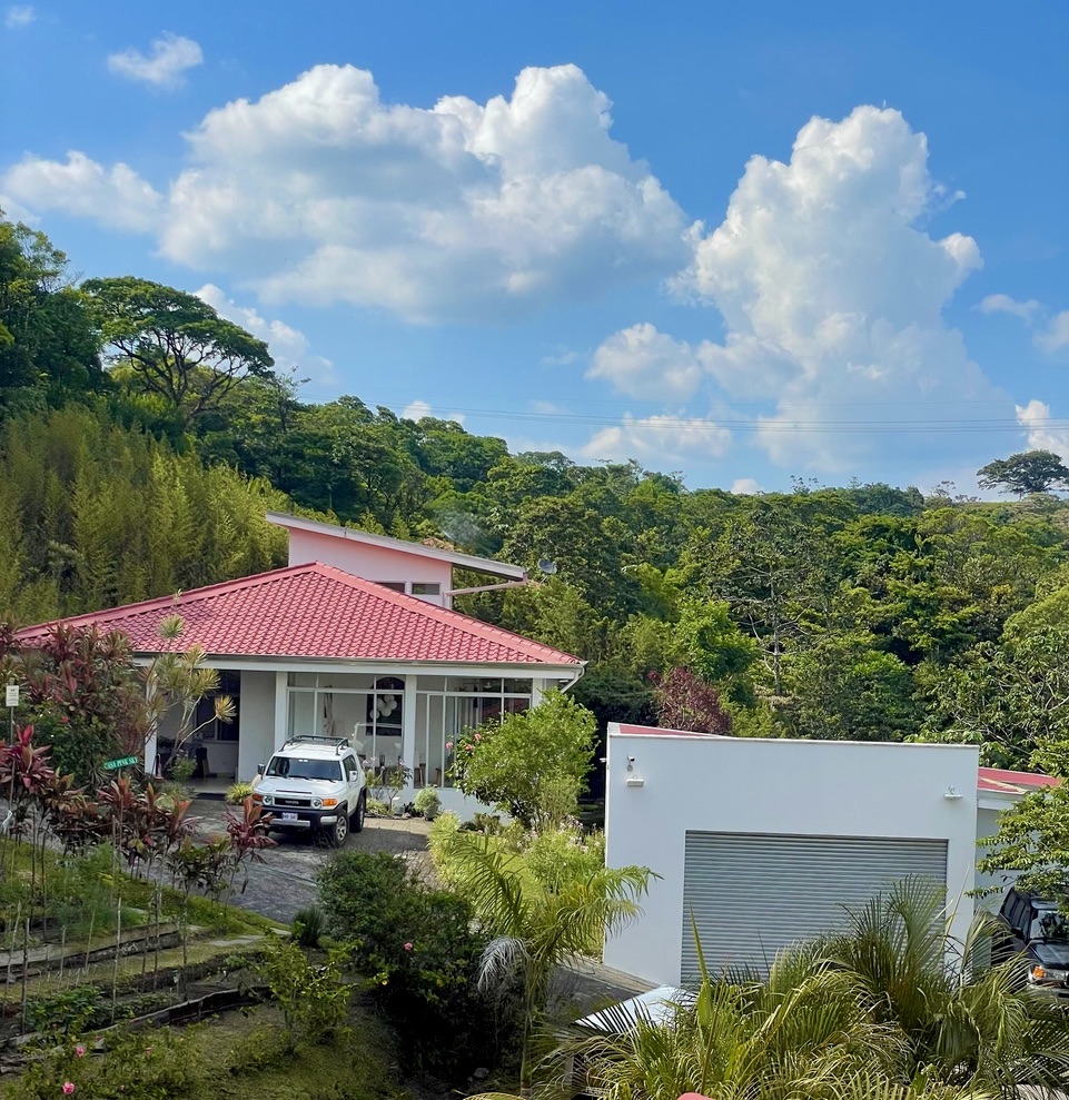ELR0233 FOR SALE: Casa Pink Sky 3BD 3BA – A Private Sanctuary with Volcano & Mountain Views - $585,000 USD This beautiful home is located in a gated community in Nuevo Arenal where you will have easy access to most major amenities such as incredible restaurants, shops, groceries, gas, banks, health facilities, government offices and more. It is also just a 1 hour and 30-minute drive to the Liberia International Airport. In addition to local amenities, the home is also centrally located to many of the tourist attractions in the area. The La Fortuna Hot Springs and the Arenal Volcano National Park are less than an hour away. You can be at the famous Guanacaste beaches in just under 2 hours. Discover Casa Pink Sky, a truly one-of-a-kind contemporary residence located within a private seven-home gated community just two miles from the charming town of Nuevo Arenal. Surrounded by Costa Rica’s lush mountains, this exceptional home offers breathtaking views of Arenal Volcano and a partial view of Lake Arenal, seamlessly blending modern comfort, security, and the serenity of nature. Designed for both everyday living and hosting, Casa Pink Sky’s thoughtfully planned layout provides privacy and comfort across its three spacious bedrooms and three full bathrooms, making it ideal as a full-time residence, vacation home, or boutique rental. From the moment you arrive, the home invites you to slow down and reconnect—enjoy morning coffee on the porch with volcano views, create and find inspiration in the light-filled glass studio, rejuvenate in your private infrared sauna and gym, or wander through botanical garden paths that lead into the jungle and down to a peaceful stream. Every space has been intentionally designed to promote wellness, elegance, and peace of mind. The main living areas feature a bright, open two-story design highlighted by stunning tablia cedar vaulted ceilings, ceramic floors, a cozy fire feature, and illuminated built-in bookshelves. European silver-frame windows, oversized ceiling fans, and expansive glass walls flood the home with natural light while framing tranquil views of the surrounding gardens and mountains. The living and dining spaces flow effortlessly into a second glass-enclosed dining area and an expansive 60-foot glass porch with polished white concrete floors, creating a seamless indoor-outdoor experience with multiple access points to outdoor spaces and bird-feeding areas. The chef’s kitchen is both refined and highly functional, featuring stainless steel appliances including a gas stove and oven, dishwasher, and refrigerator, paired with white quartz countertops, cedar cabinetry, an oversized stainless-steel sink, ceramic backsplash, island seating, and generous pantry storage. Thoughtful lighting throughout includes pendant, recessed, and ceiling fan fixtures that enhance both ambiance and practicality. The primary bedroom suite serves as a private sanctuary within the home, offering an open two-story layout with warm cedar accent details, full frosted-glass sliding closets, open storage walls, a custom shoe closet, additional under-stair storage, and a private tiled ceramic porch. Its spa-inspired primary bathroom is a standout feature, showcasing unique designer tilework, bench seating, a quartz countertop, and a dramatic glass wall separating the interior and exterior showers, completed by a frosted glass barn door with stainless steel hardware and a private outdoor shower area. The two additional bedrooms, each with convenient access to their own full bathrooms, provide comfortable and private accommodations for family members or guests. Each bathroom throughout the home reflects the same attention to detail and contemporary design, ensuring a cohesive and elevated living experience across all three bedrooms and baths. Beyond the bedrooms, Casa Pink Sky offers spaces dedicated to creativity, wellness, and relaxation. A stunning glass-walled upper-level room with its own tiled balcony overlooks the gardens and mountains and is ideal for an art studio, office, music room, or yoga sanctuary. A separate wellness building includes a fully equipped gym with rubber flooring, two glass walls with garden views, oversized fans, a full bathroom, and an infrared sauna designed for renewal and balance. Outdoor living completes the experience with covered porches, tiled patios, and a fully equipped outdoor kitchen featuring a stainless-steel BBQ, two-burner gas cooktop, stainless steel sink, tiled backsplash, glass roof protection, and exterior lighting. Set on a beautifully landscaped two-acre property, botanical gardens with bromeliads and fruit trees wind through the grounds, leading into the jungle and down to a peaceful stream. Additional features include a laundry room with washer and dryer, a custom wood countertop, sink, storage, and hanging space; two bodegas, including an oversized storage room with an additional refrigerator and ice chest; a one-and-a-half car garage with extra height, electric roll-up door, metal shelving, workbench, freezer, and additional refrigerator; fiber optic internet; a Pet Safe containment system; a community electric gate; and an extensive camera surveillance system designed by a retired New York Police Sergeant. For more information or to schedule a private showing, contact El Lago Properties at +(506) 8339-1770 or email ellagoproperties@gmail.com . To explore more listings in the Lake Arenal area, visit www.ellagoproperties.com Price $585,000 USD Location: Nuevo Arenal Land Area M2 8,094 Land Area Acre 2 Bedrooms: 3 Bathrooms: 3 View Lake Mountain Volcano General Amenities: Electricity Water Internet Hot Water - Electric Cable Air Wall Unit - 2 Ceiling Fans Features: Alarm System Security Cameras Gas fireplace Open Deck Covered Terrace Balcony Garage Semi - Furnished Washing Machine Dryer – Electric Oven/Range – Gas Refrigerator (2) Freezer Dishwasher Landscaping Lawn Fence Fruit Trees Quartz Countertop Terrace Tile 