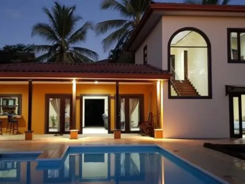 This private 2 story home is located near Educarte and Journey schools. Only 12 minutes to Playa Tamarindo. Nearby supermarkets, stores and restaurants. Quality solid concrete block construction with double layer roof system. The home is completely surrounded by solid concrete block walls and solid concrete columns with gate entrance. New A/C installed in each of the 3 BR (2020). Home is completely furnished. There's spare room on the property to build more units. House measures: 230m2 Pool: Adult and child sections, deck 100m2. Rancho: 65m2 (solid galvanized steel), includes a 2nd kitchen and a large granite wet bar, furnished. Parking lot: for 8 cars Property has lovely landscaping and mature trees. Property measures: 1673m2 Town water meter. Taxes: $437.00 per year Perfect family house with a perfect location !! [gallery columns="4" ids="3681,3682,3683,3684,3685,3686,3687,3688,3689,3690,3691,3692,3693,3694,3695,3696,3697,3698,3699,3700,3701,3702,3703"]