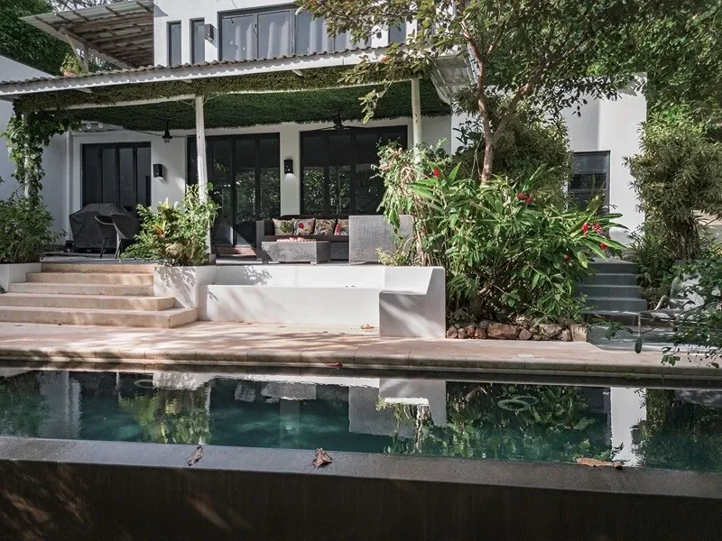 Villa Blanca Estate is a luxurious sanctuary that promises serenity, privacy, and limitless opportunities for both residential bliss and tourist business. This exquisite property consists of a house and a guest house, spread across a sprawling 5042m2 lot, offers a seamless blend of modern comforts and natural beauty, mere minutes away from the vibrant towns of Tamarindo, Avellanas, Playa Grande, and Playa Negra. Property Features: *Elegant Living Spaces: Villa Blanca boasts a spacious main house with 3 well-appointed bedrooms and 3 lavish bathrooms, each accompanied by unique rock showers that echo the raw beauty of its surroundings. The open-concept living area, accentuated by a big kitchen with a granite island, dishwasher, and state-of-the-art appliances, ensures that entertaining is done with ease and style. *Unmatched Outdoor Living: An infinity pool serves as the jewel of the outdoor space, inviting you to bask in the sun or enjoy a refreshing dip with a view that stretches into eternity. The endless gardens, meticulously maintained, are a haven of tranquility and provide the perfect backdrop for relaxation or grand-scale entertaining. *Versatile Commercial Potential: Zoned for commercial use, the estate is ideal for those envisioning a boutique hotel, eco-lodge, gourmet restaurant, rental complex, or serene yoga retreat. Its prime location on a public access road and proximity to amenities makes it an attractive destination for tourists and locals alike. *Sustainable Living: The property is adorned with a variety of fruit trees and tropical plants, creating a self-sustaining environment that celebrates Costa Rica s biodiversity. *Modern Amenities: Comfort is paramount at Villa Blanca, with features including full laundry facilities, an outdoor shower, air conditioning, a bodega with an extensive collection of tools, and equipment for lawn and pool maintenance. *Additional Accommodations: The charming casita on the premises offers additional living space, complete with 1 bedroom, 1 bathroom, and fully equipped living and dining areas, both indoor and outdoor. This cozy guest house is perfect for hosting visitors or can serve as a lucrative rental opportunity. *Investment Opportunity: Whether you re searching for a personal haven or a commercial venture, Villa Blanca is a property that promises growth and enjoyment. Its versatility and prime location make it a unique investment that stands out in the Costa Rican real estate market. Embrace the Pura Vida lifestyle at Villa Blanca where dreams of tropical living and entrepreneurial aspirations converge amidst the waves of the Pacific.